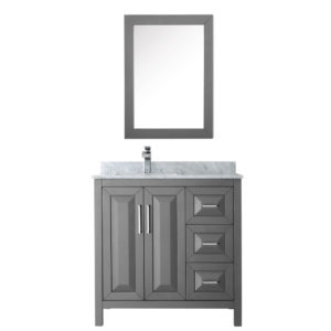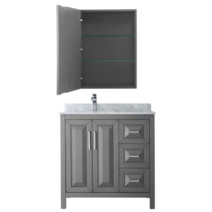 Daria 36 inch Single Bathroom Vanity in Dark Gray, White Carrara Marble Countertop, Undermount Square Sink, and Medicine Cabinet
