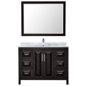 The beautiful Daria collection vanities stand out in any bathroom with strong, clean lines, raised panels and elegant counters with square sinks. There’s plenty of cabinet space, the fully extending drawers are dovetail construction, and chrome detailing completes the look. Daria vanities deftly combine the function of today with a nod to the elegance of the past. It’s the new modern – classic styling with a contemporary twist.