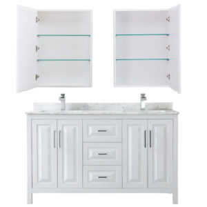 The beautiful Daria collection vanities stand out in any bathroom with strong, clean lines, raised panels and elegant counters with square sinks. There’s plenty of cabinet space, the fully extending drawers are dovetail construction, and chrome detailing completes the look. Daria vanities deftly combine the function of today with a nod to the elegance of the past. It’s the new modern – classic styling with a contemporary twist.