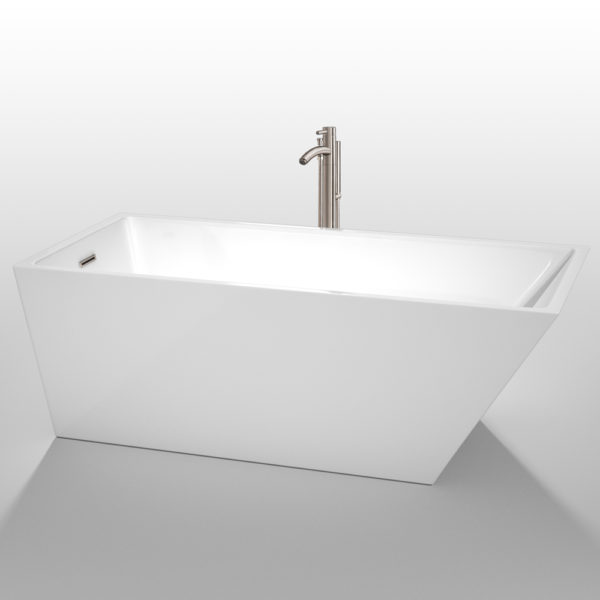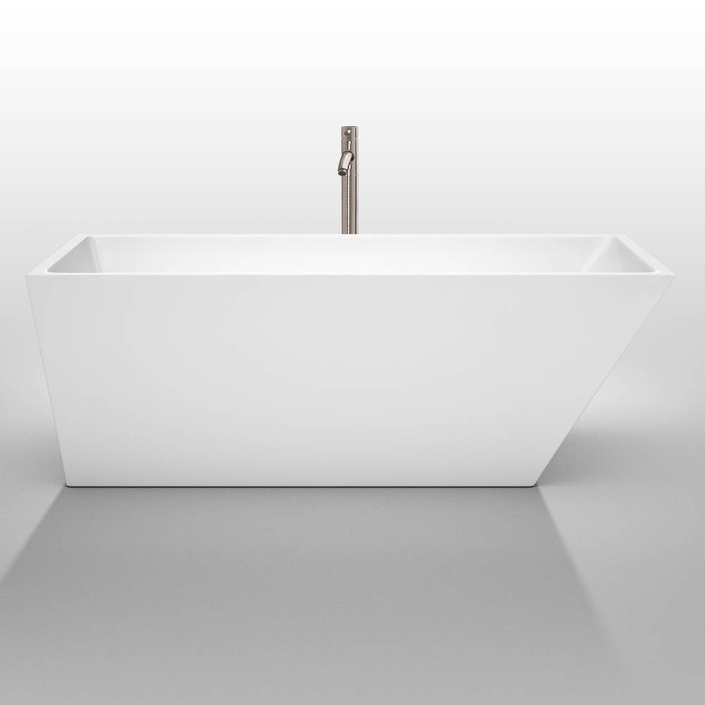 Hannah 67 inch Freestanding Bathtub in White with Floor Mounted Faucet, Drain and Overflow Trim in Brushed Nickel