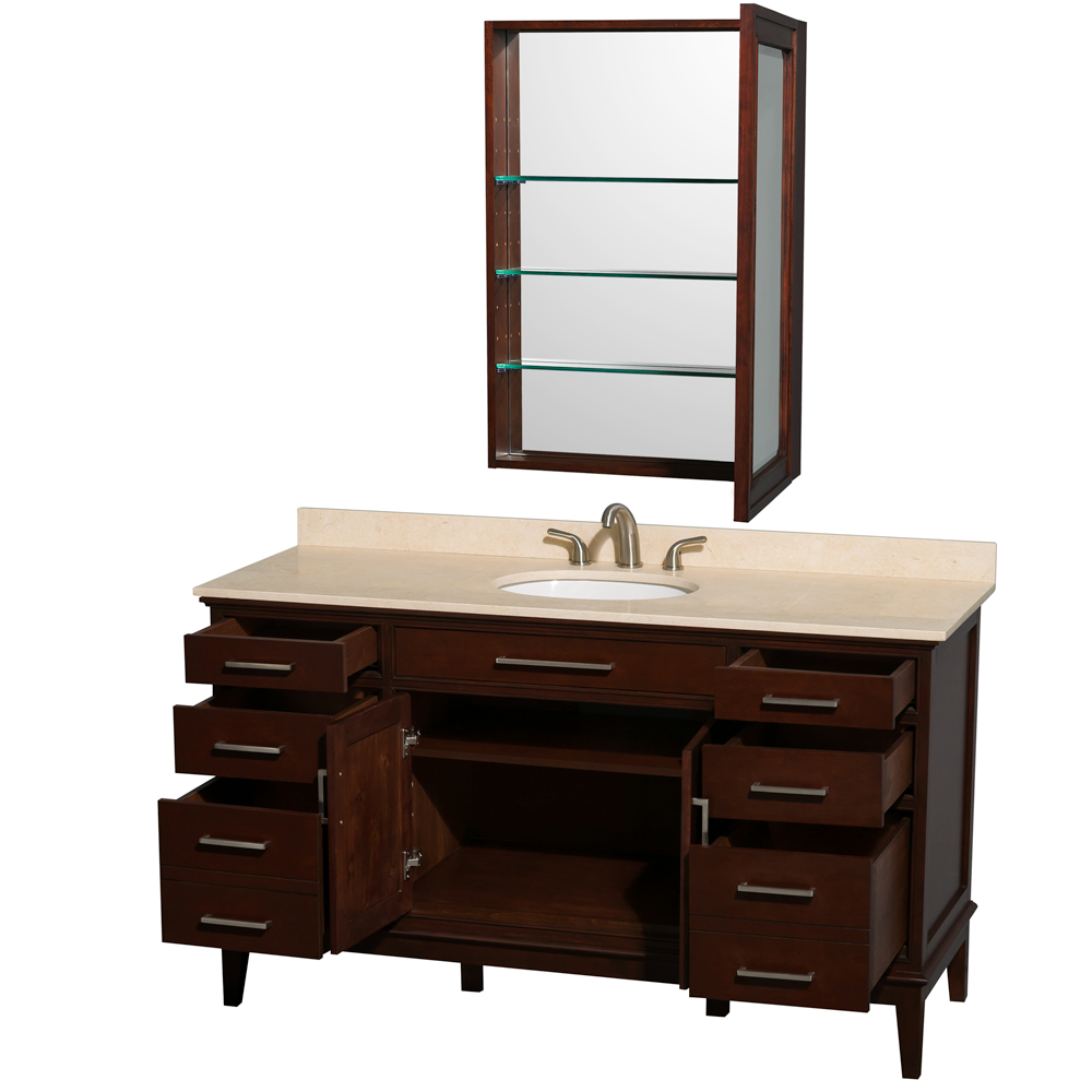 Hatton 60 inch Single Bathroom Vanity in Dark Chestnut, Ivory Marble Countertop, Undermount Oval Sink, and Medicine Cabinet