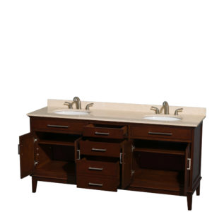 Hatton 72 inch Double Bathroom Vanity in Dark Chestnut, Ivory Marble Countertop, Undermount Oval Sinks, and No Mirror