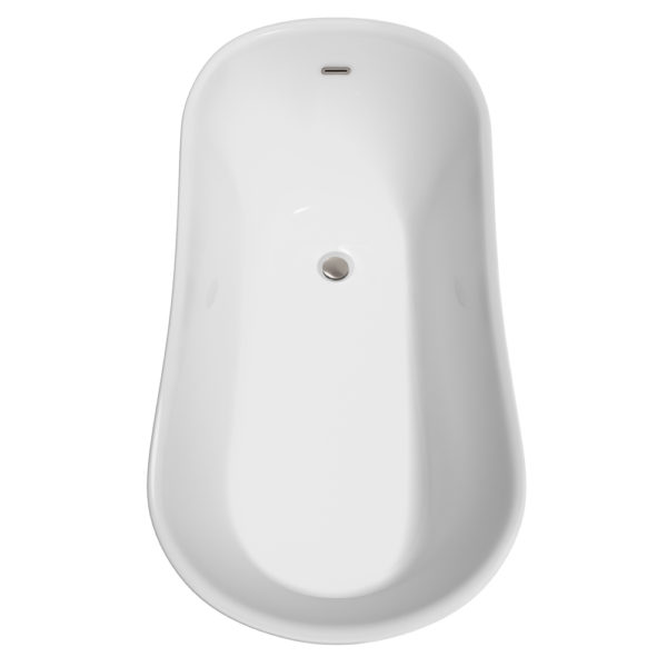 Janice 67 inch Freestanding Bathtub in White with Brushed Nickel Drain and Overflow Trim