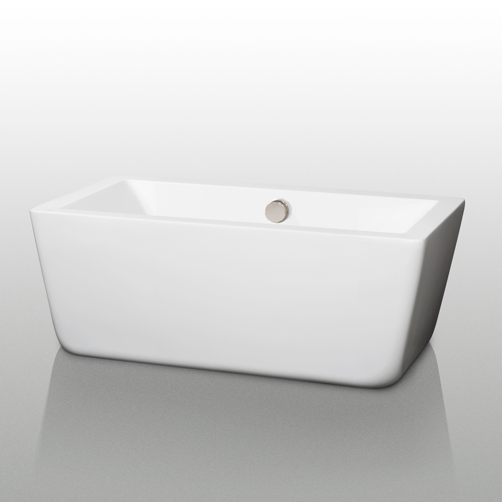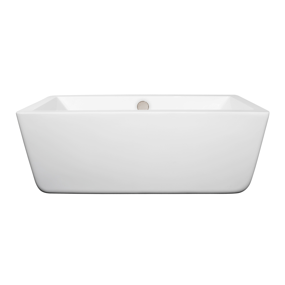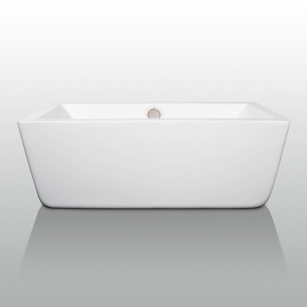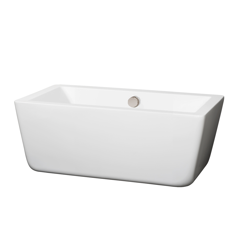 Laura 59 inch Freestanding Bathtub in White with Brushed Nickel Drain and Overflow Trim