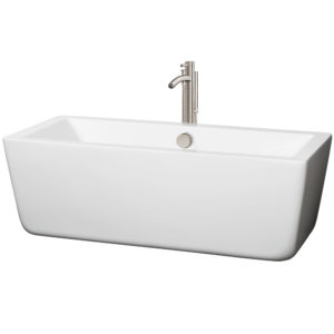 - Pop-up, overflow and floor mounted faucet included in brushed nickel