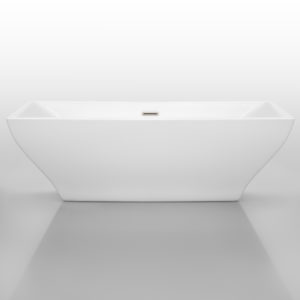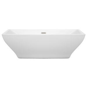 Maryam 71 inch Freestanding Bathtub in White with Brushed Nickel Drain and Overflow Trim