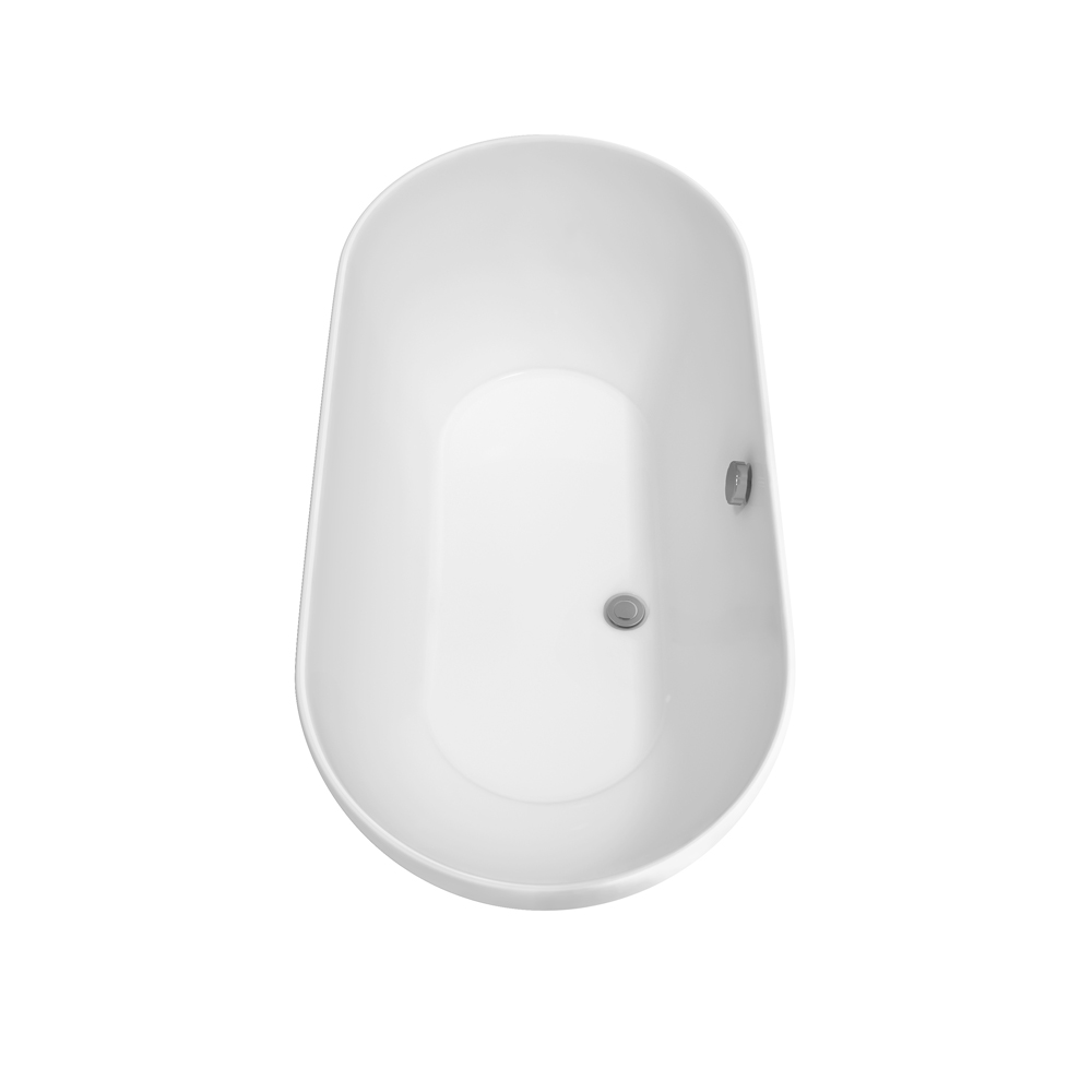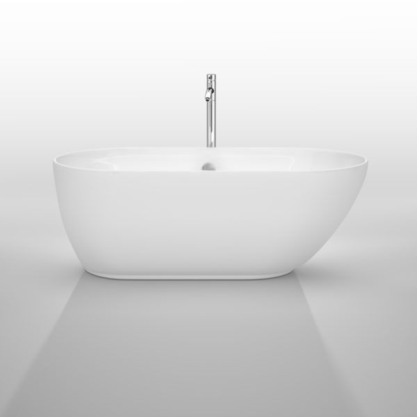 Melissa 60 inch Freestanding Bathtub in White with Floor Mounted Faucet, Drain and Overflow Trim in Polished Chrome