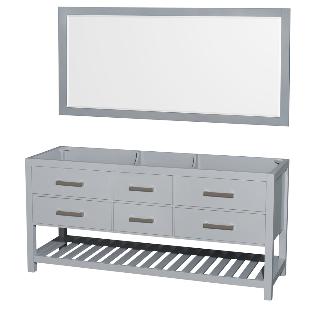 Natalie 72 inch Double Bathroom Vanity in Gray, No Countertop, No sinks, and 70 inch Mirror