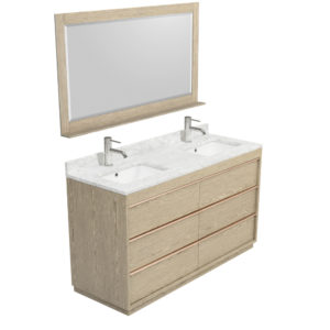 Gorgeous looks meet the highest construction standards in the stunning Naya bathroom vanity series. No detail was overlooked, from the elegant design of the drawer pulls to the beautiful hand-crafted veneers. The warmth of the wood and the cool chic of modern design blend seamlessly in the Naya series by Wyndham Collection. Available in multiple sizes and with an optional solid white Carrara marble counter.