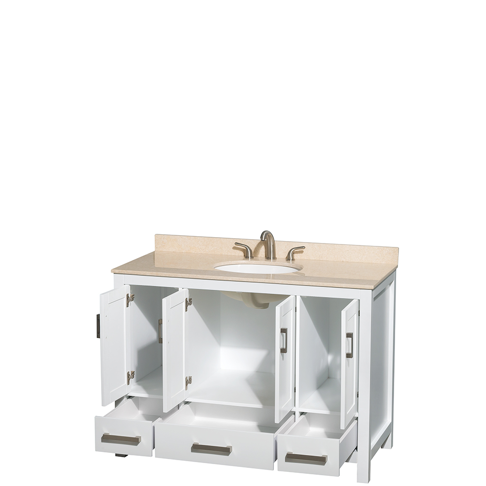 Sheffield 48 inch Single Bathroom Vanity in White, Ivory Marble Countertop, Undermount Oval Sink, and No Mirror