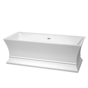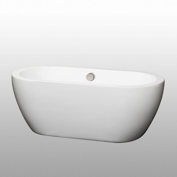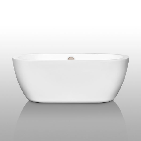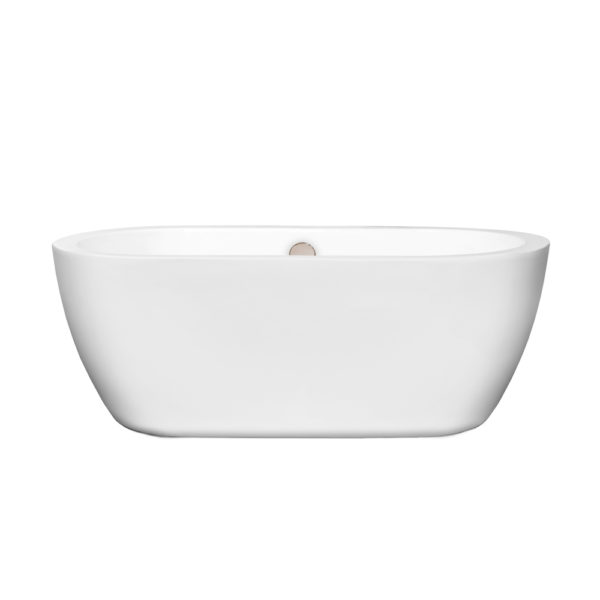 Soho 60 inch Freestanding Bathtub in White with Brushed Nickel Drain and Overflow Trim