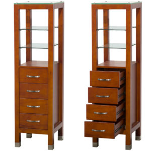 Afford your bathroom some much needed storage space with this modern 4-drawer linen tower, solidly constructed in eco-friendly wood.